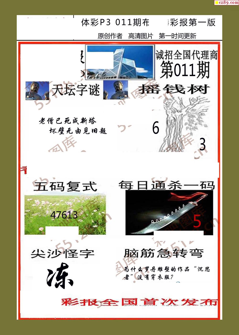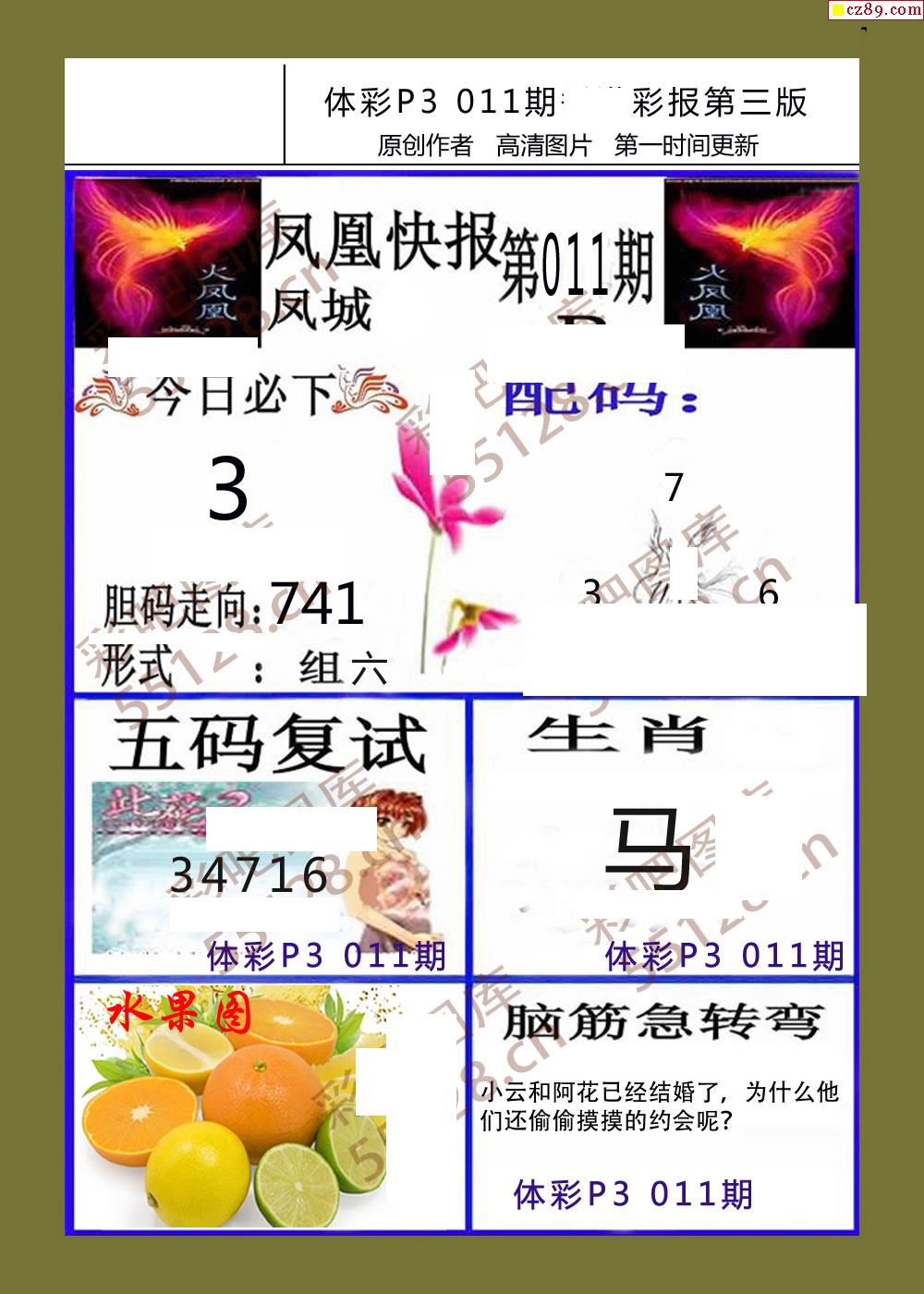 香岛彩报011期体彩p3图谜