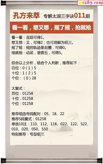 26年011期峥奕精解福彩3D字谜太湖钓叟谜语第三句话 抢就抢