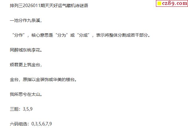 2026011期p3试机号首奖诗