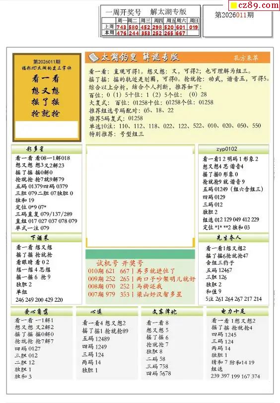 2026011期解太湖3d字图迷汇总报