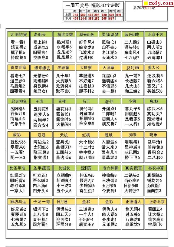2026011期福彩3D图谜汇总