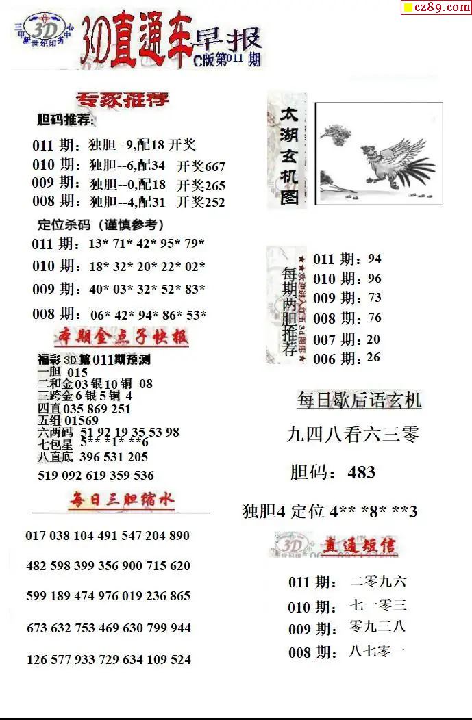 福彩3D2026011期直通车早报ABCD版
