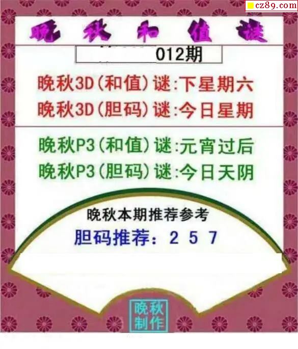 晚秋和值谜2026012期3d图谜