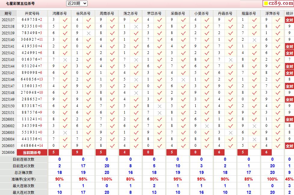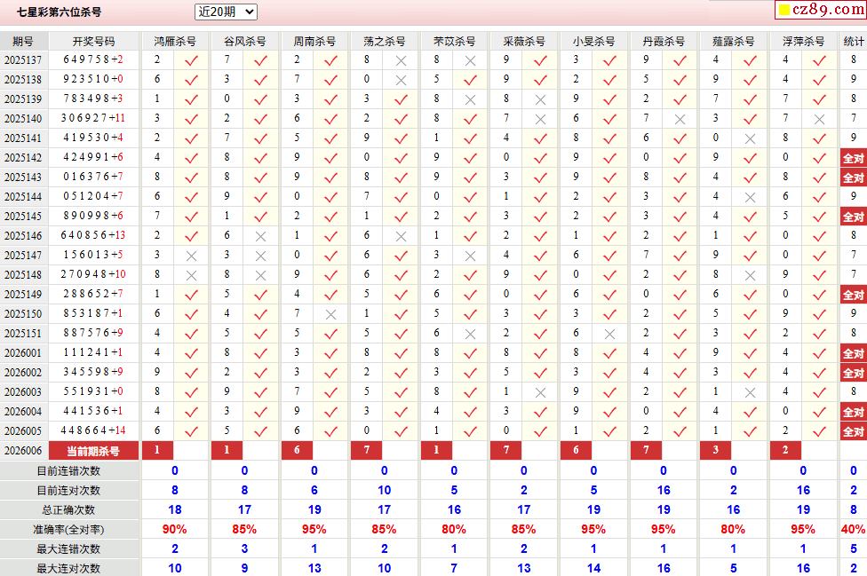 006期彩票专家体彩七星彩定位杀号图表