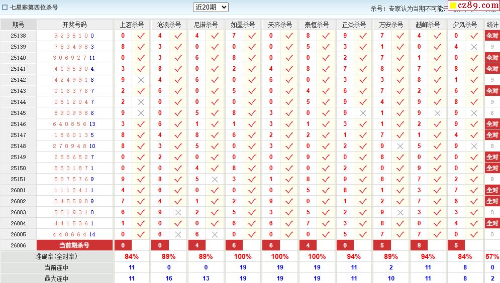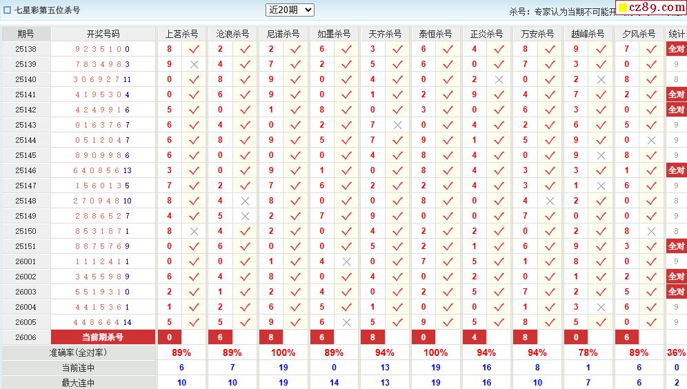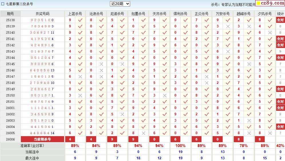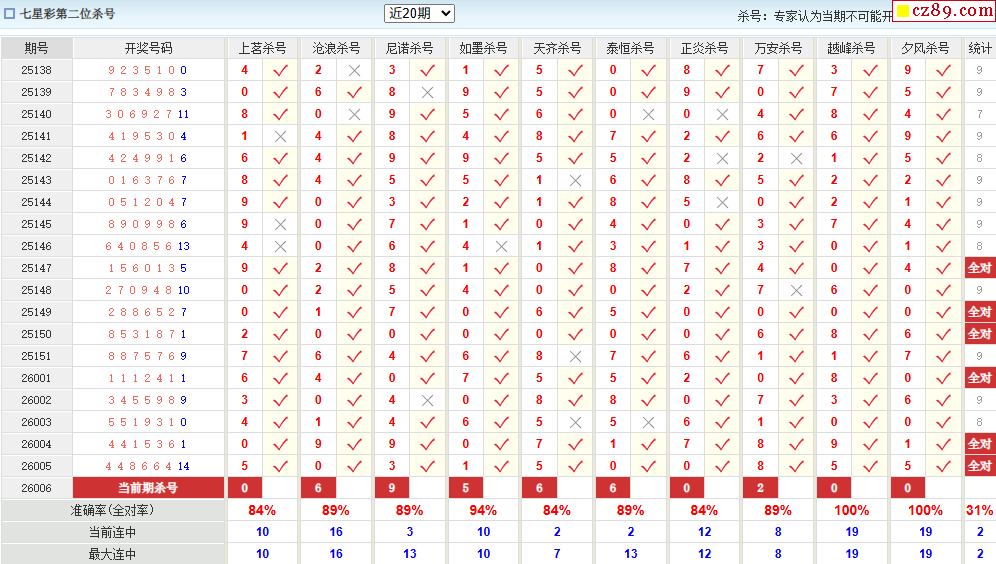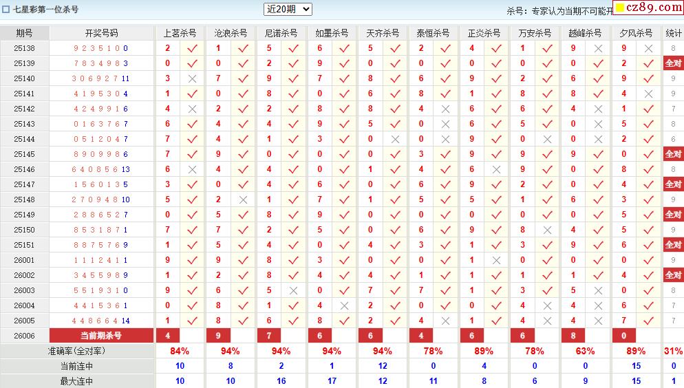 006期彩票专家体彩七星彩定位杀号图表