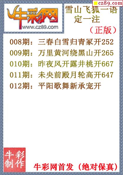 26年012期牛彩网福彩3D字谜汇总大全【晚间版】