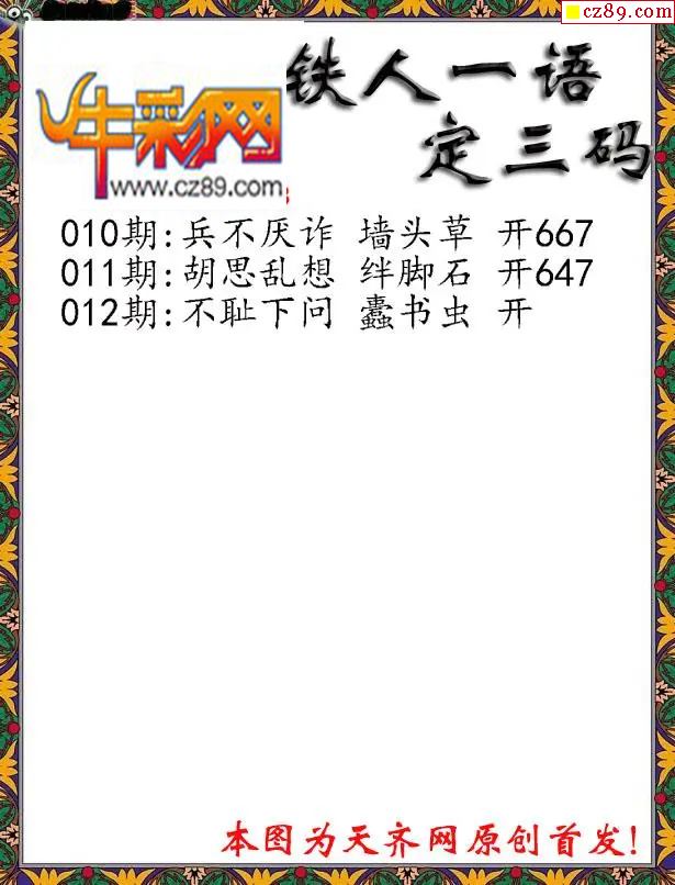 牛彩版3D字谜彩报图26年012期打印版
