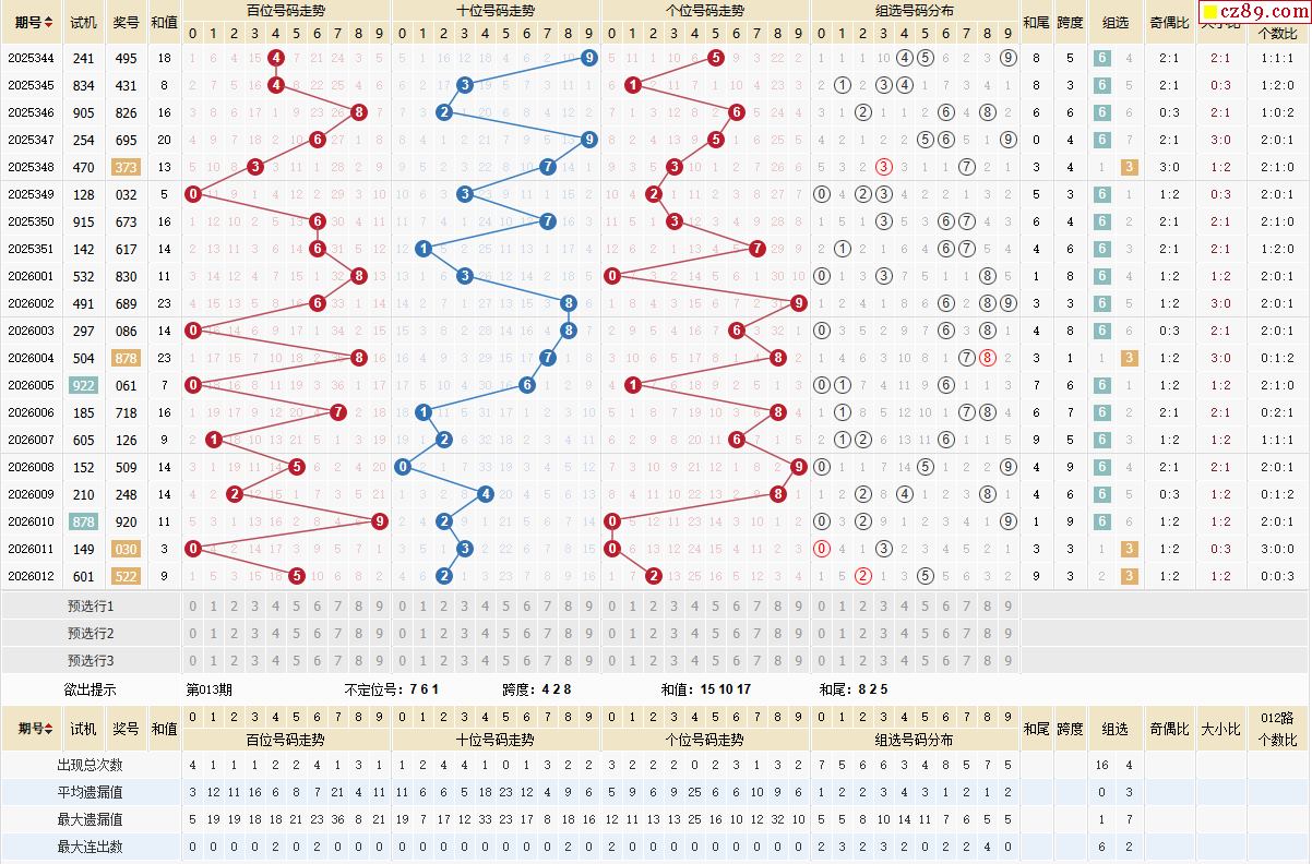 26年013期彩宝贝专家体彩P3杀号定码图表