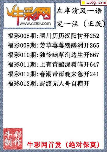 26年013期左岸清风一语定一注(原创正版)