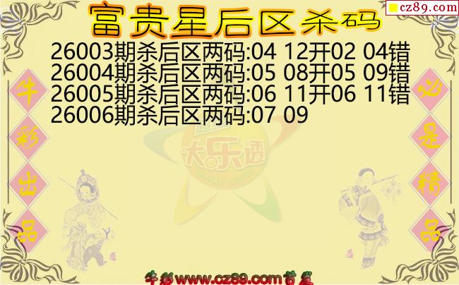 大乐透2026006期富贵星后区杀码图谜