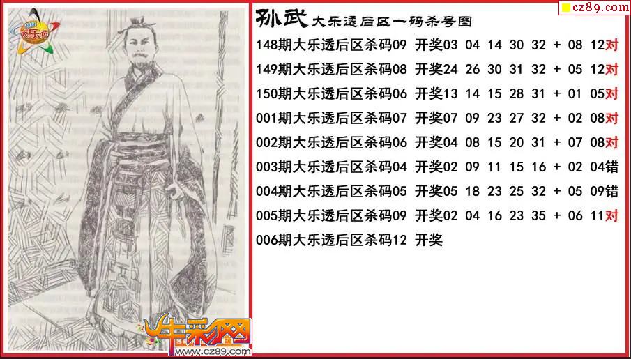 大乐透006期孙武后区一码杀号图