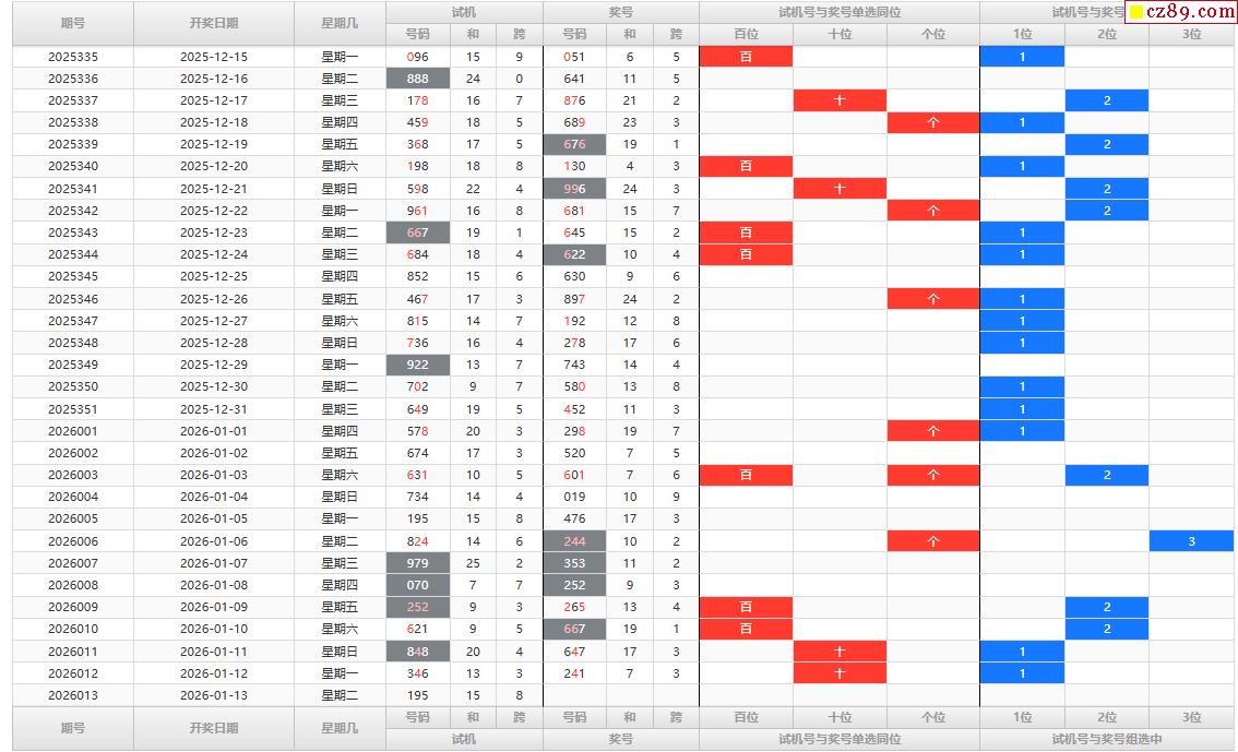 千禧3D试机号2026013期206关注数897金码8试机号对应码414