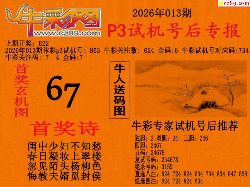 2026013期p3试机号后牛彩网专报