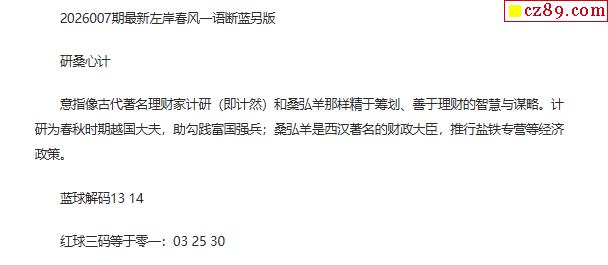 26年福彩双色球007期 左岸春风一语断蓝另版