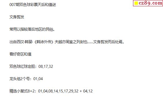 26年福彩双色球007期 彩票天后和值谜
