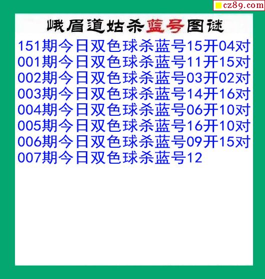 峨眉道姑杀蓝号007期双色球图谜