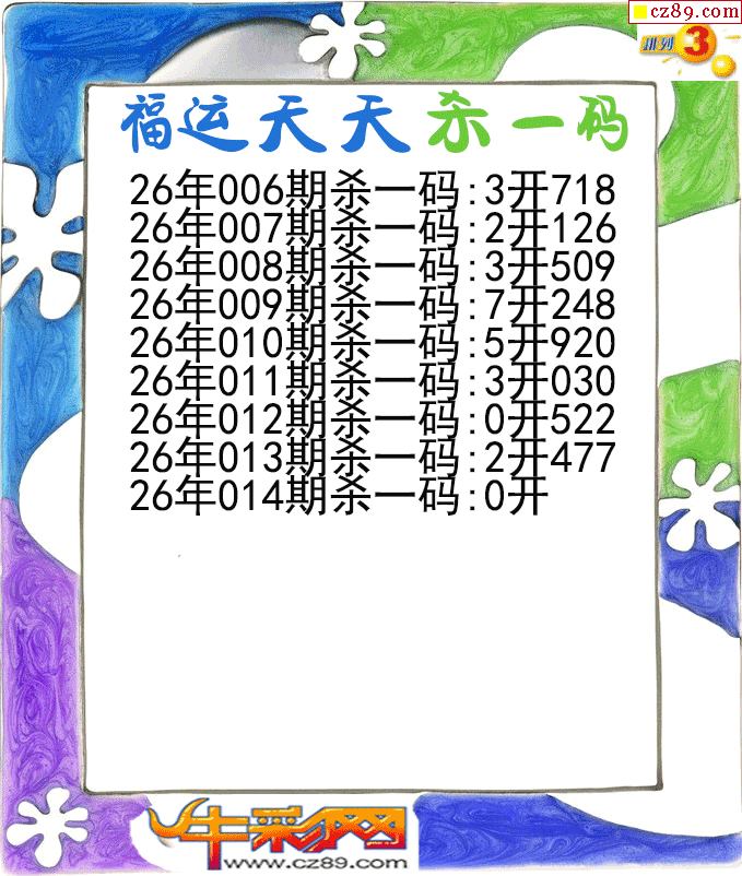 福运天天杀一码014期体彩P3图谜