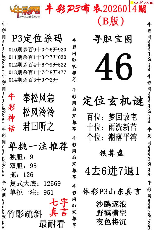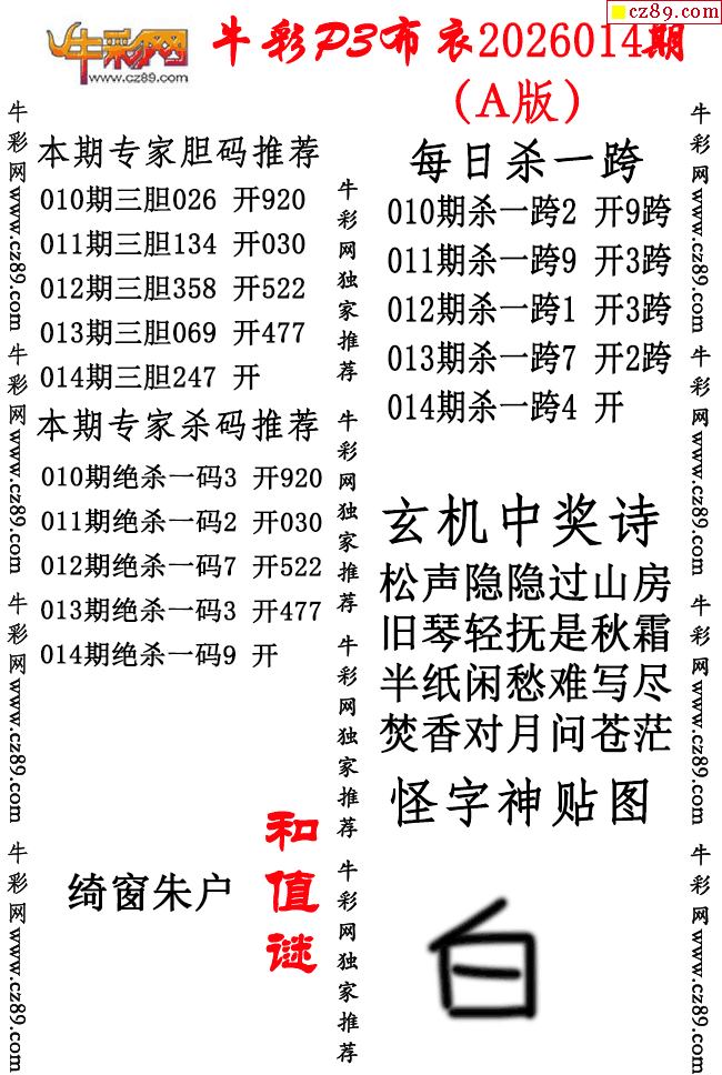 牛彩P3布衣26年014期AB版图谜(精华版)