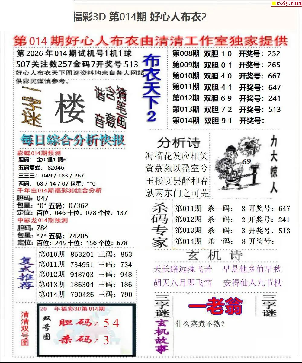 2026014期3D图谜汇总(一)