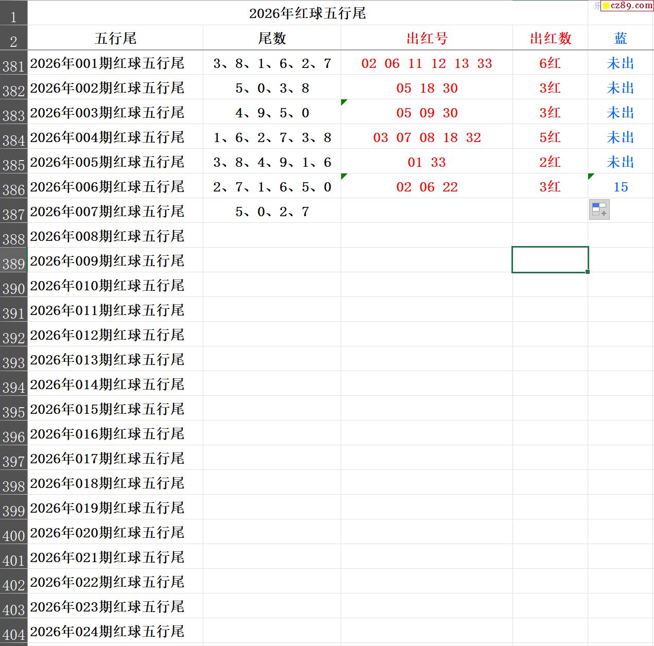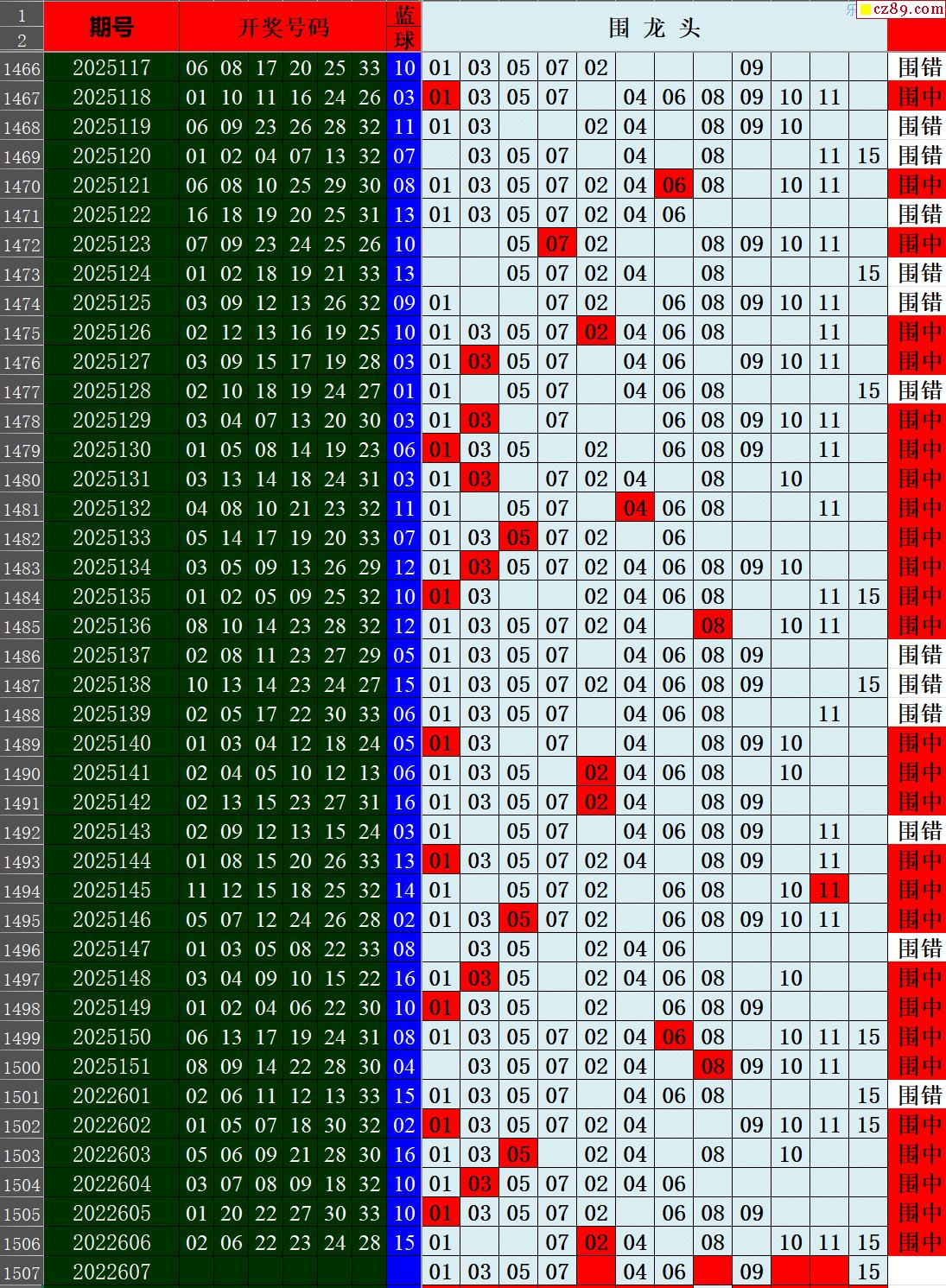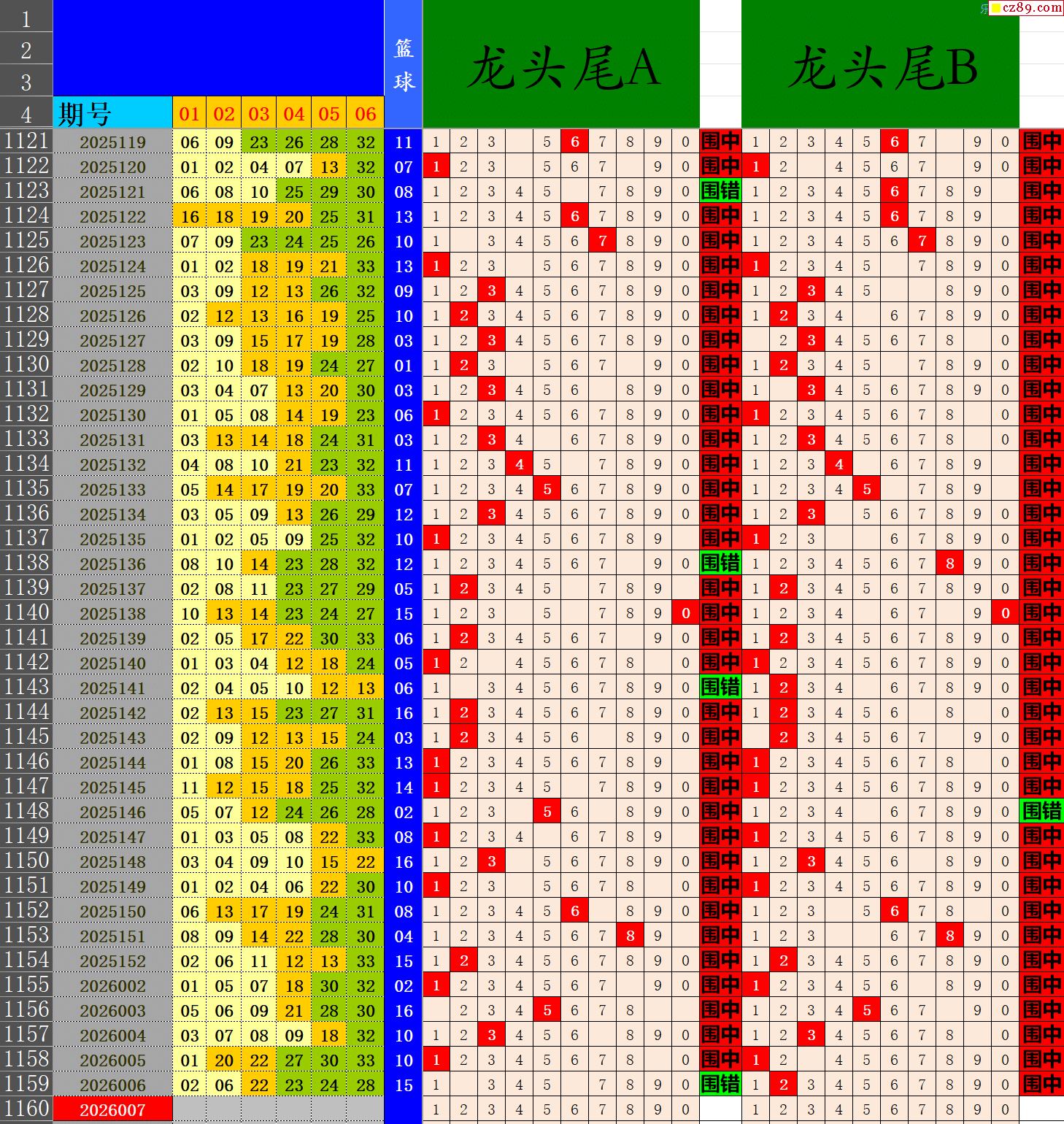 26年007期秋雨龙头凤尾走势图表