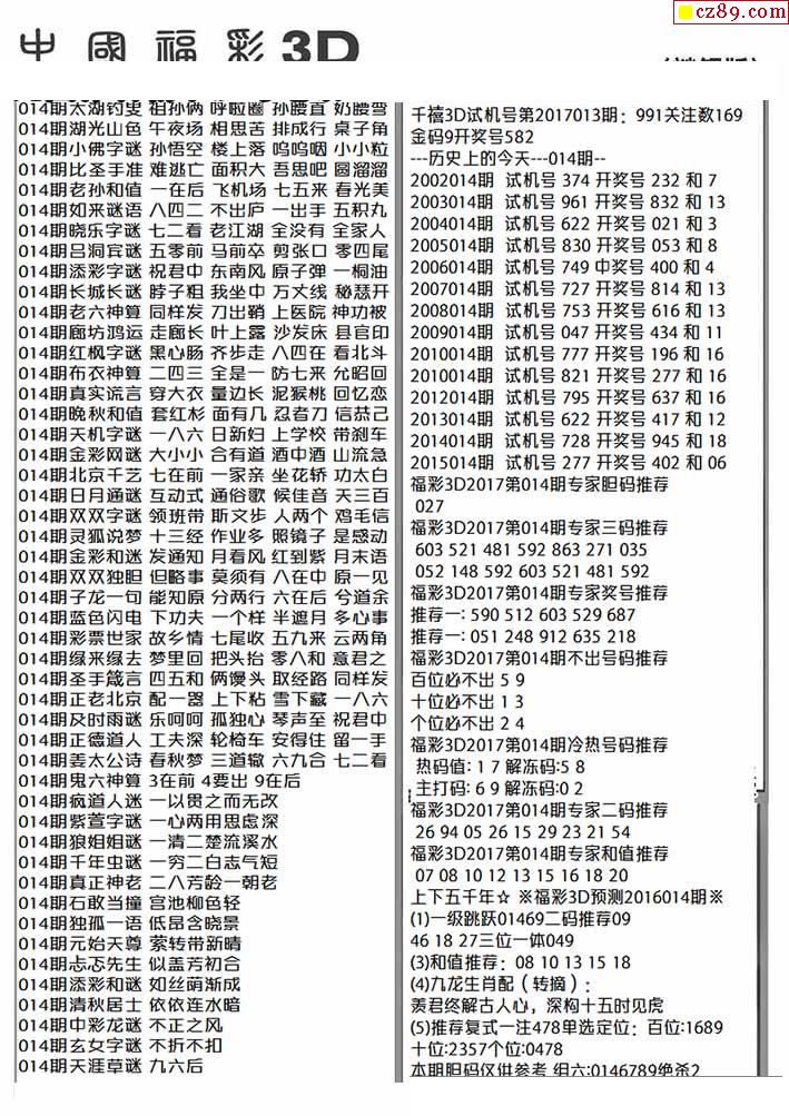 杀手+鑫马快报+字迷汇总26年014期3d图谜