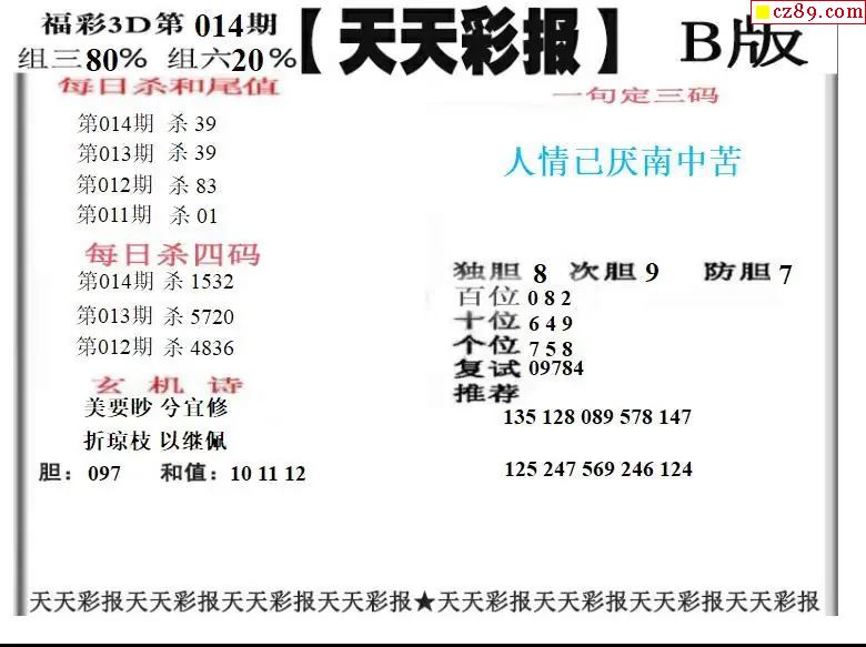 福彩3D2026014期天天彩报A版 天天彩报B版