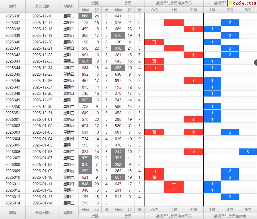 千禧3D试机号2026014期833关注数517金码1试机号对应码286