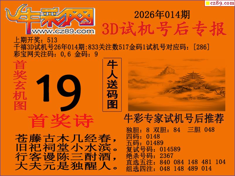 牛彩版3D预测彩报图26年014期打印版