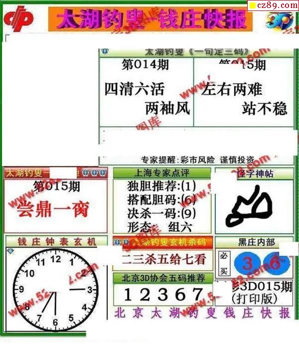 钱庄快报2026015期3d图谜