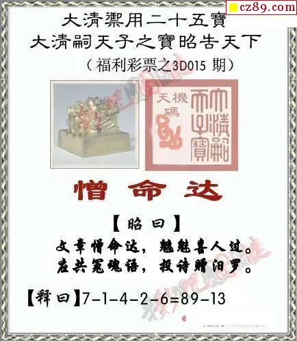 福彩三帝定三码015期3d图谜
