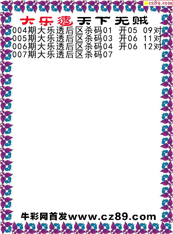 大乐透007期牛彩特邀专家前区后区杀号定胆图表