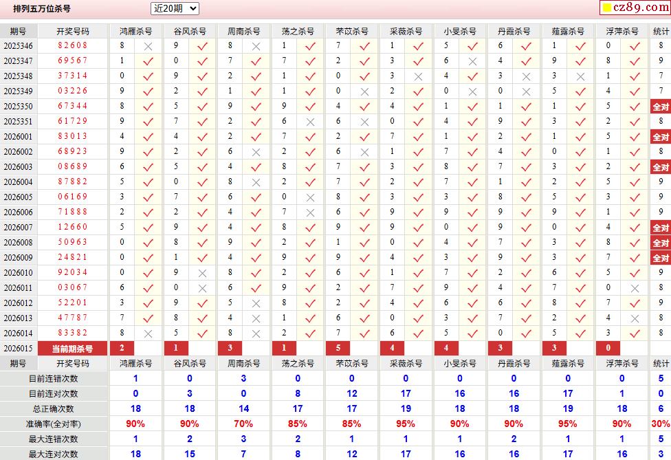 26年015期彩宝贝专家体彩P3杀号定码图表