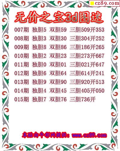 无价之宝送胆2026015期3d图谜(原创)