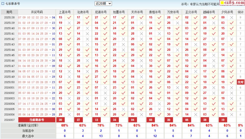 七乐彩007期 彩宝贝专家杀号码预测图表
