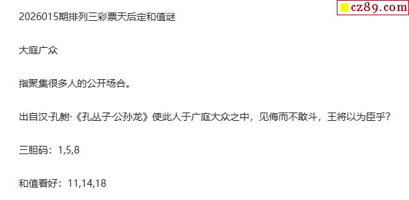 彩票天后p3定和值谜26年015期