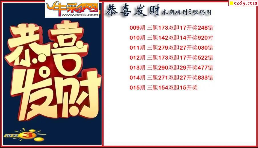 2026015期P3恭喜发财胆码图