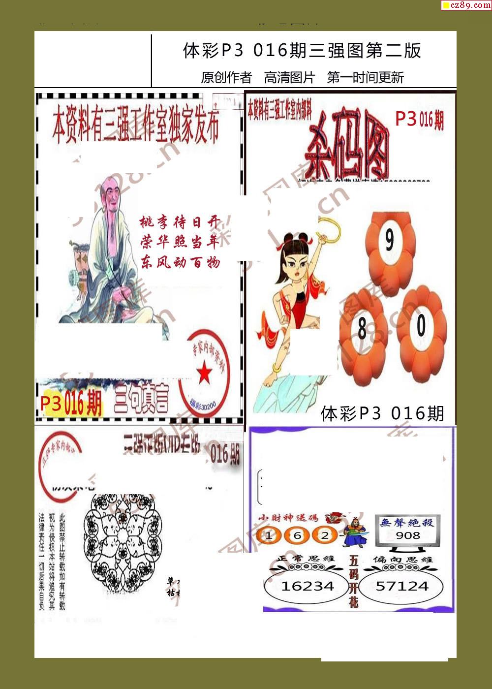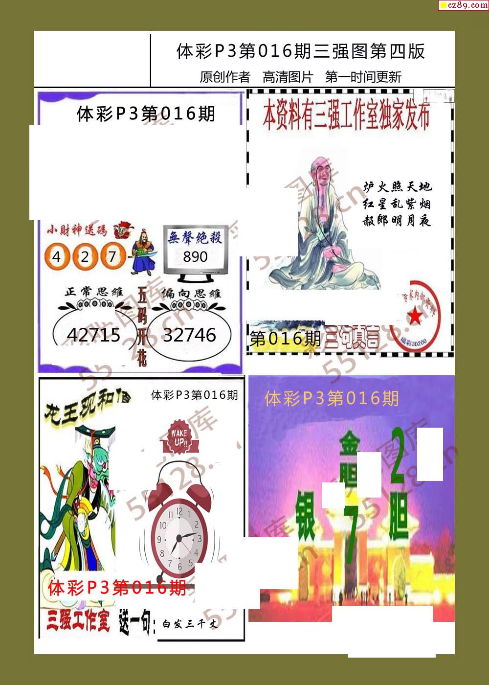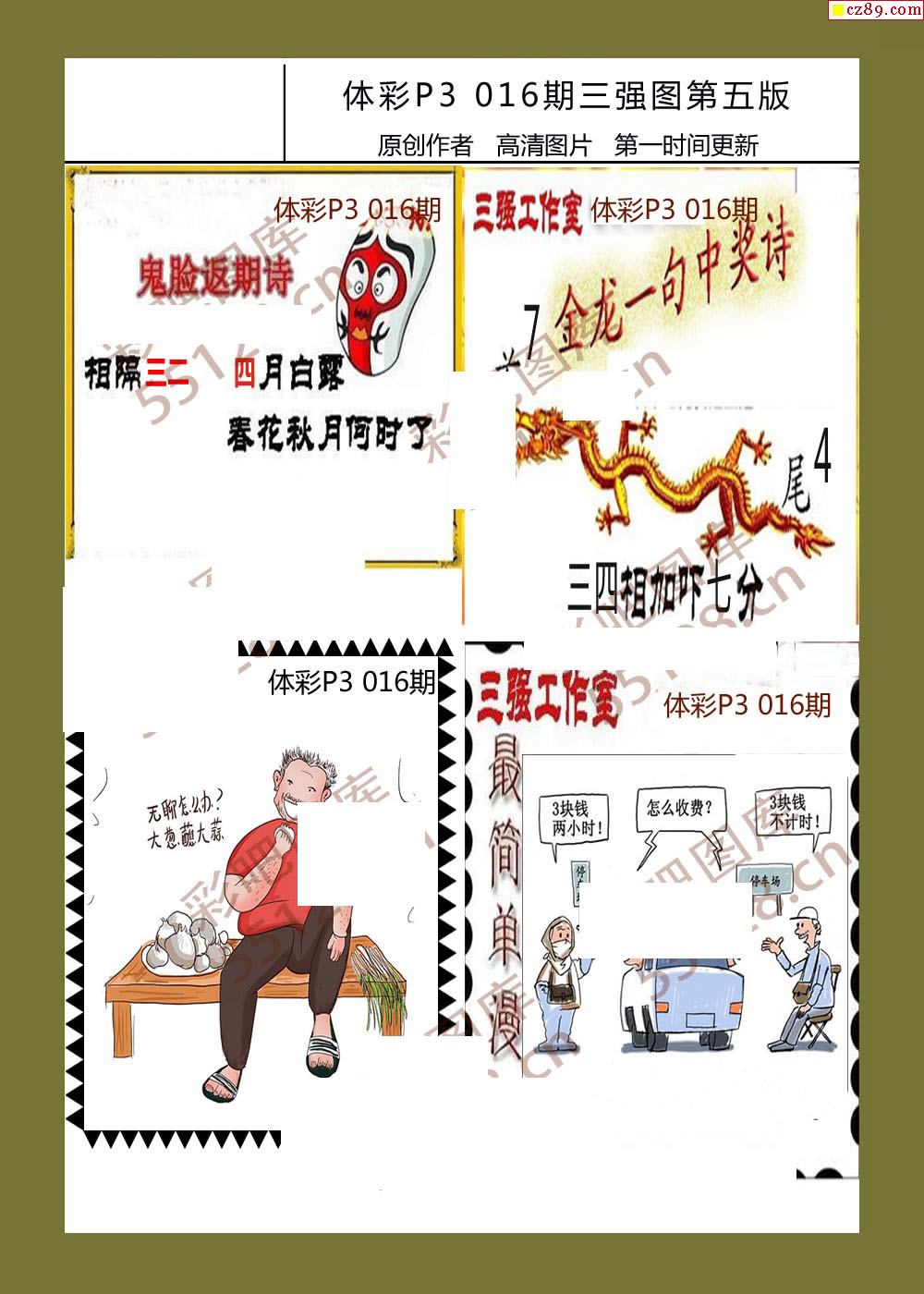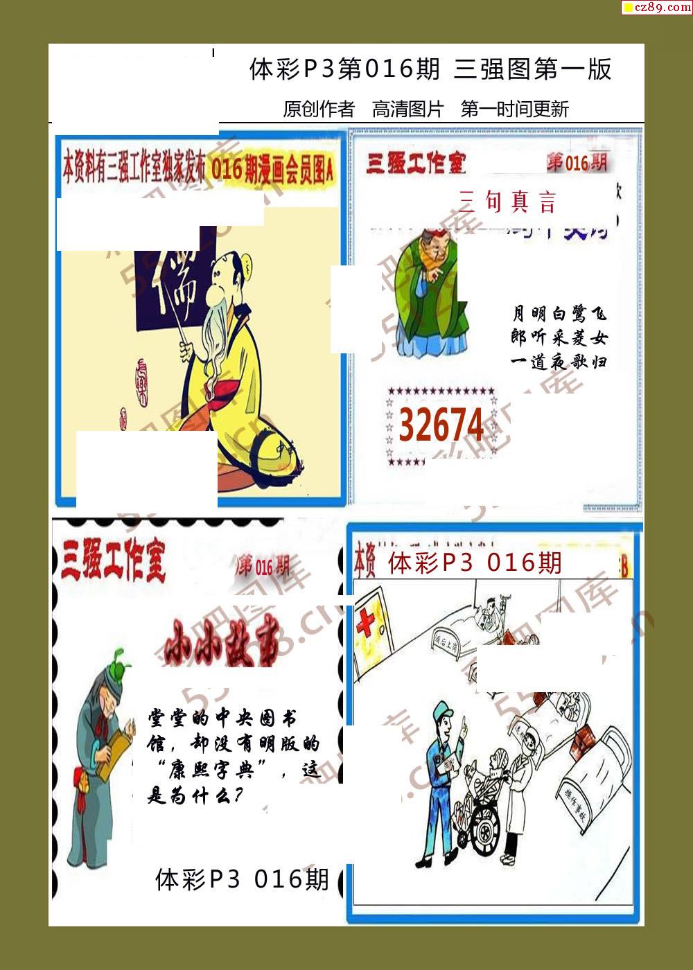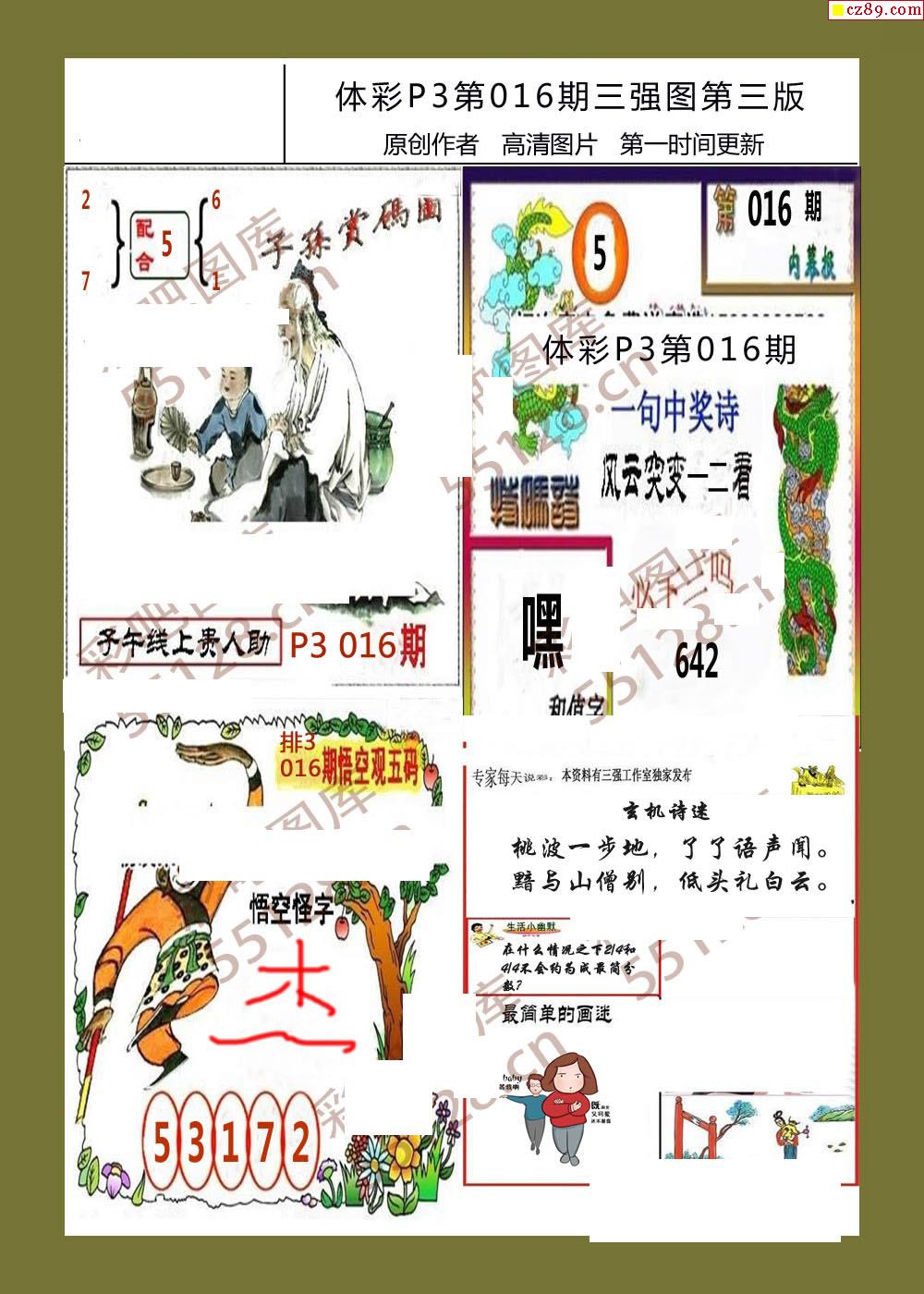 三强图系列016期体彩p3图谜