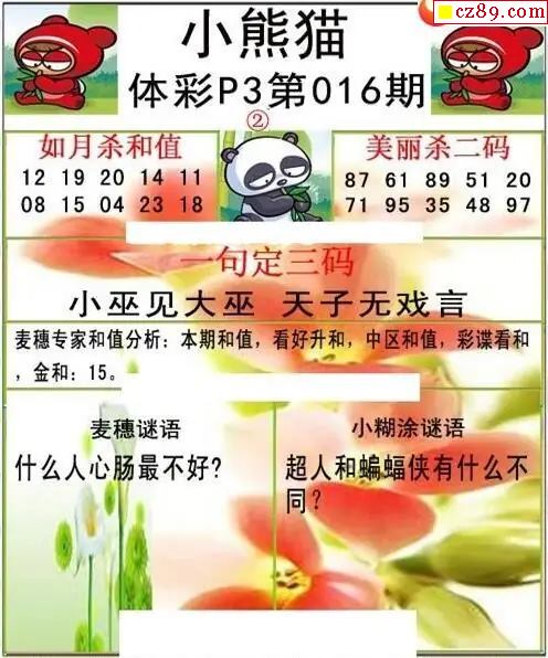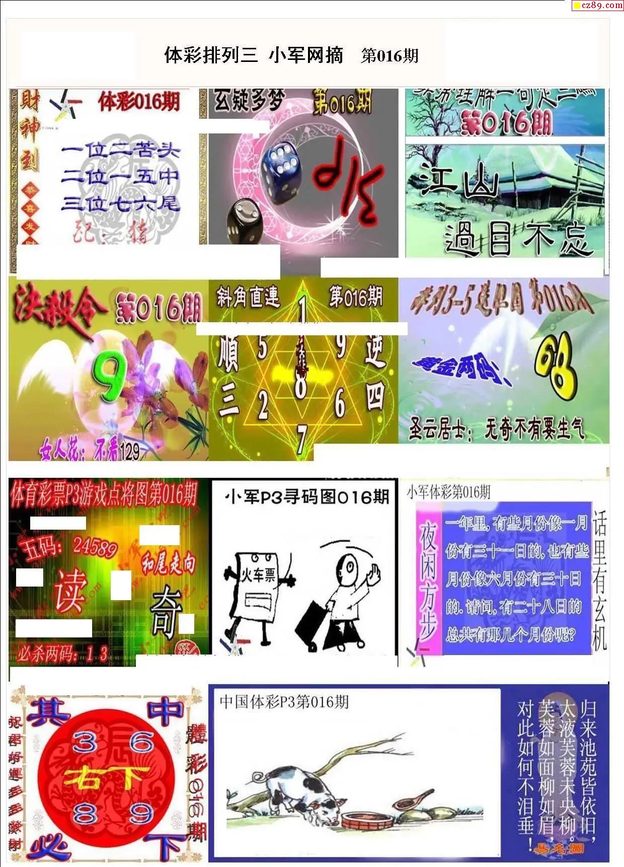 2026年016期牛彩网体彩P3画迷图谜汇总分享