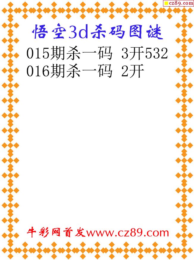 悟空杀码26016期3d原创图谜