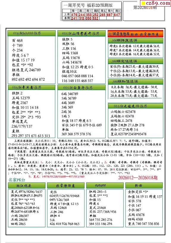 牛彩版3D预测彩报图26年016期打印版