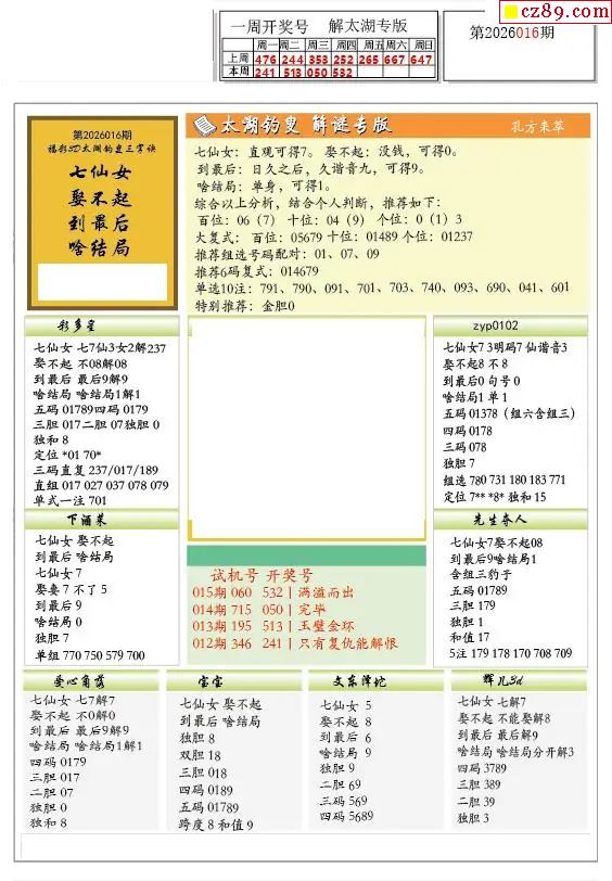 真藏机图26年016期福彩3D图迷