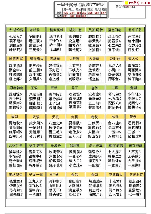 2026016期福彩3D图谜汇总