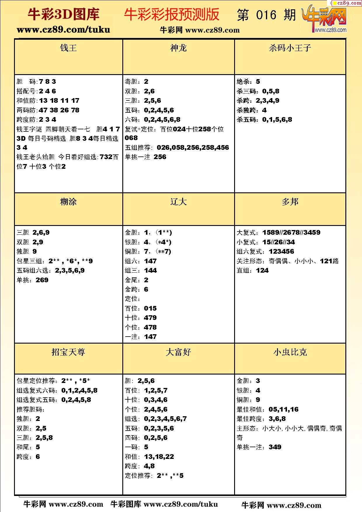 牛彩版3D预测彩报图26年016期打印版