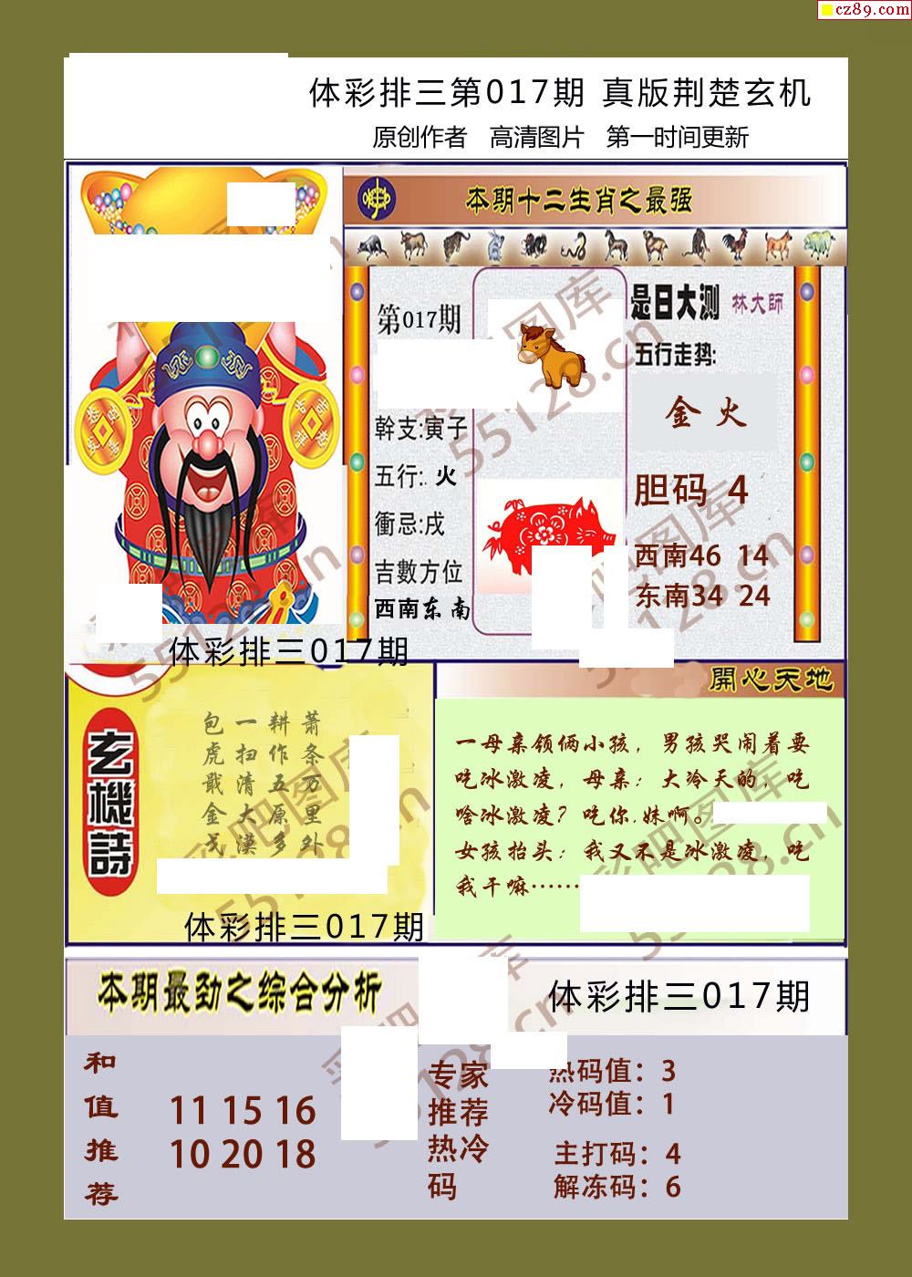 2026年017期牛彩网体彩P3画迷图谜汇总分享