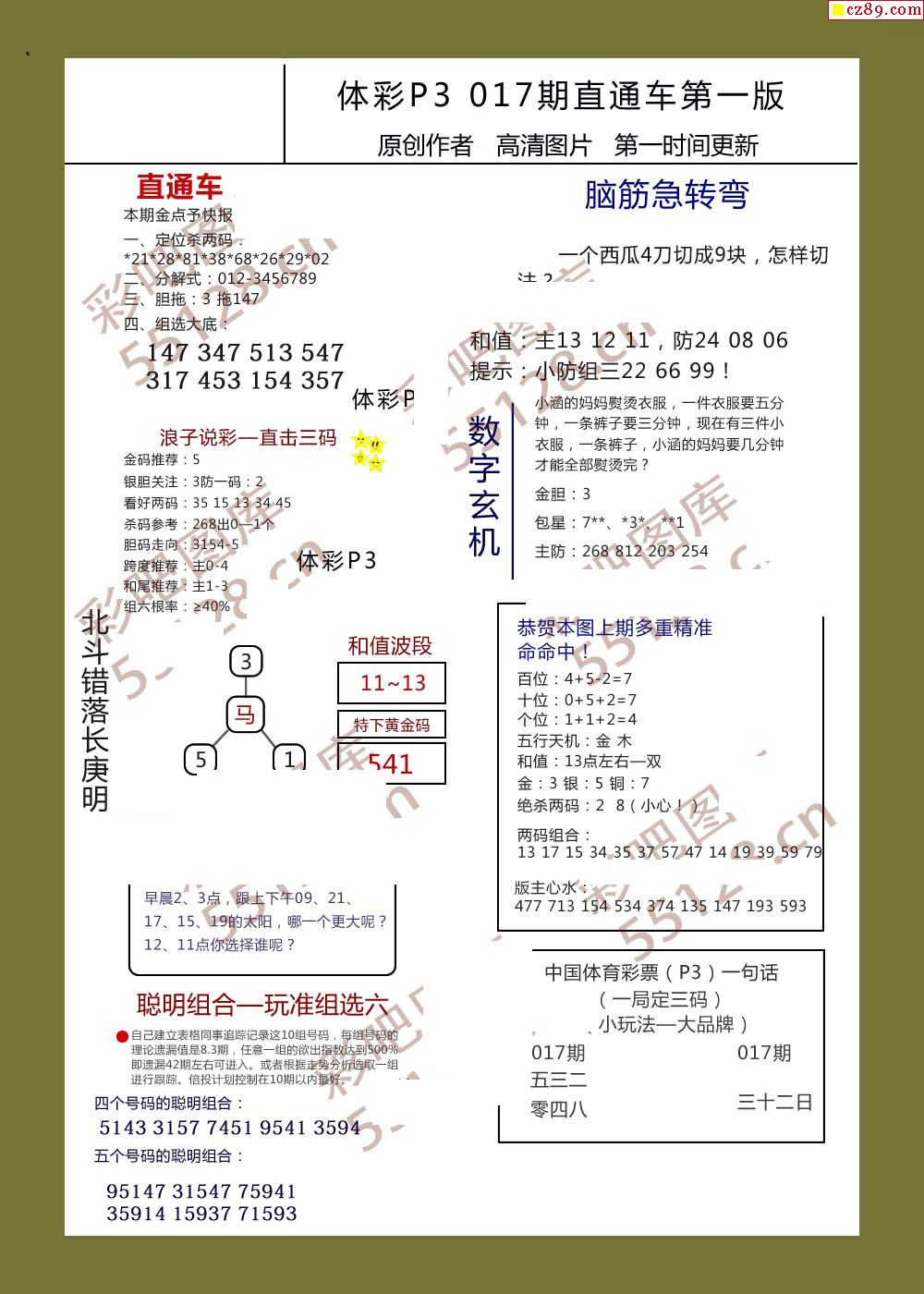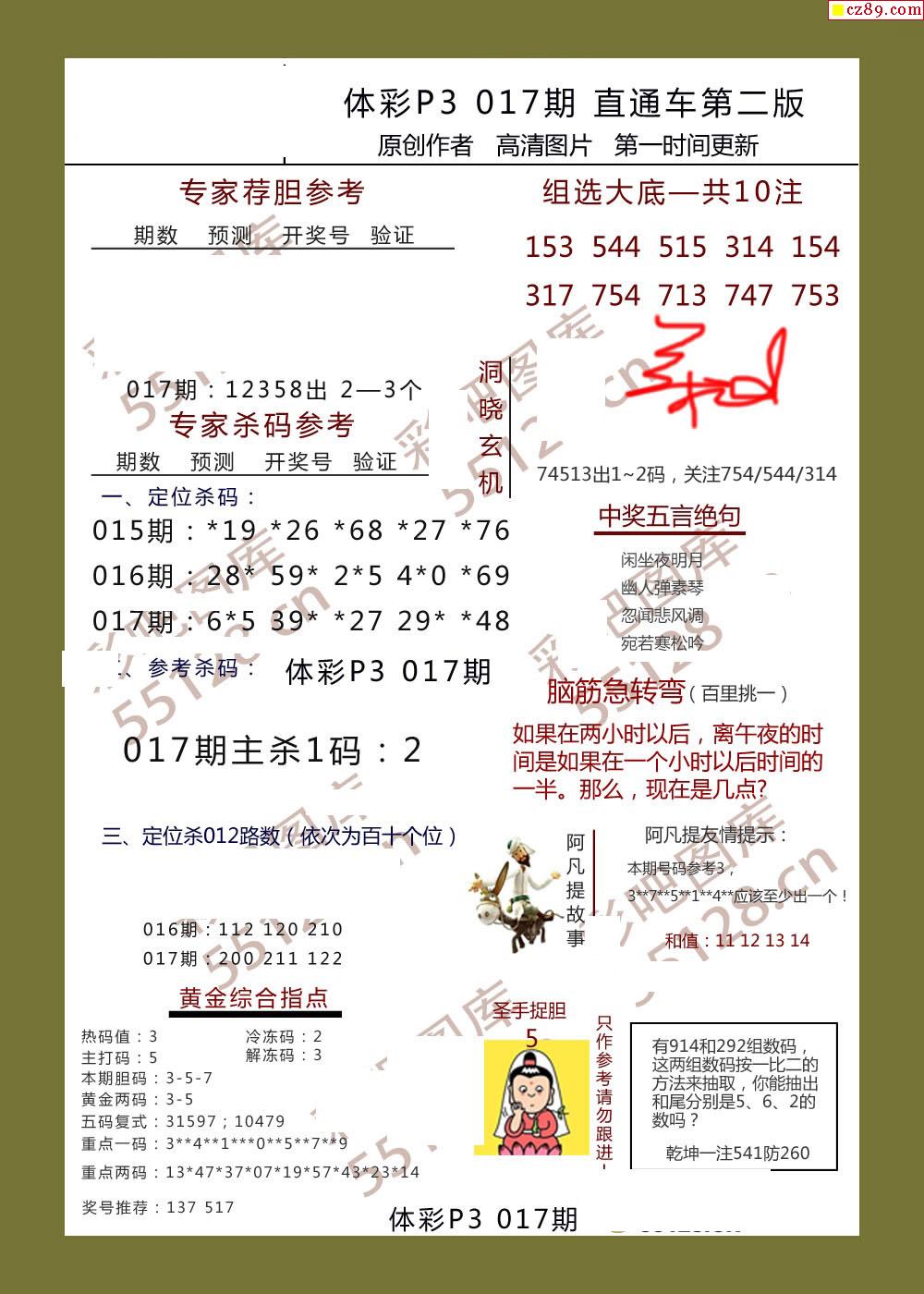 2026年017期牛彩网体彩P3画迷图谜汇总分享