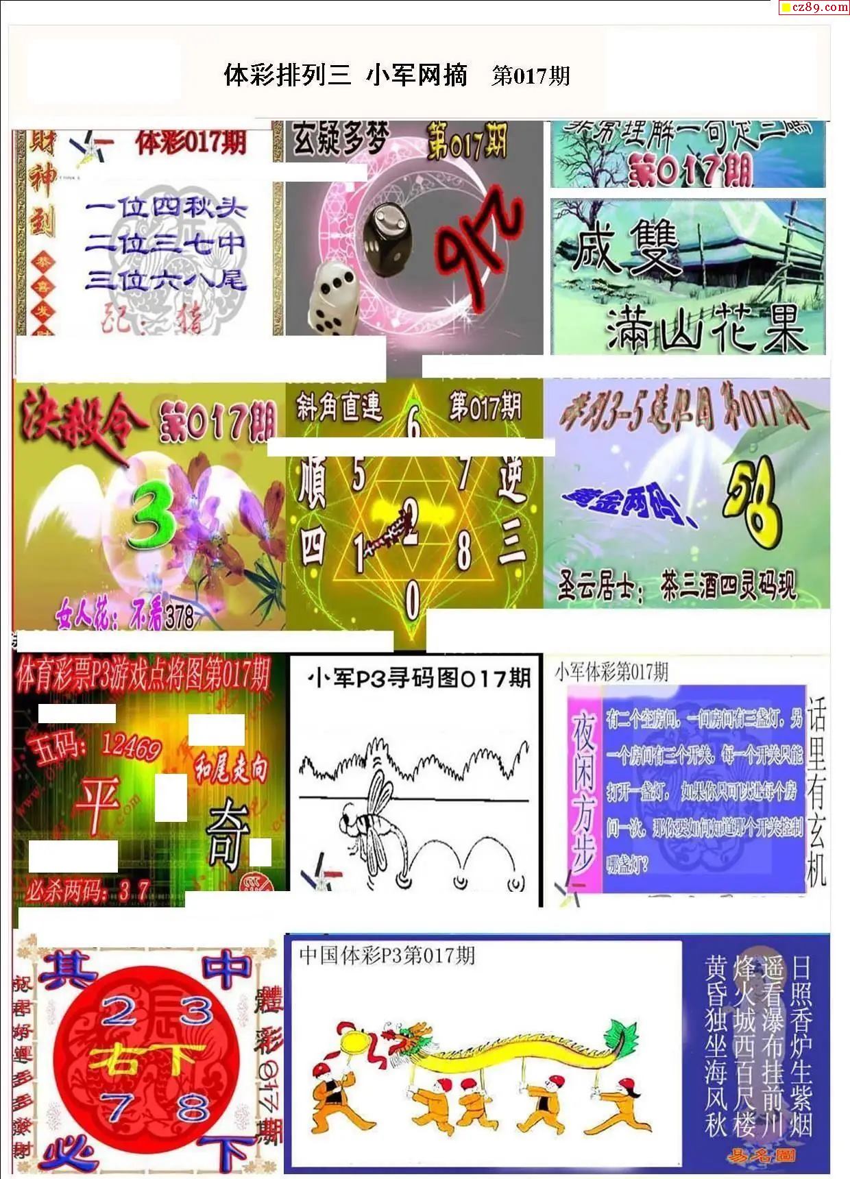 2026年017期牛彩网体彩P3画迷图谜汇总分享