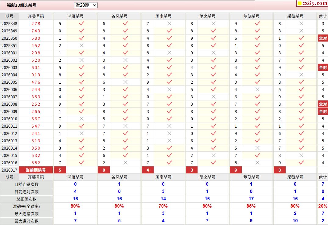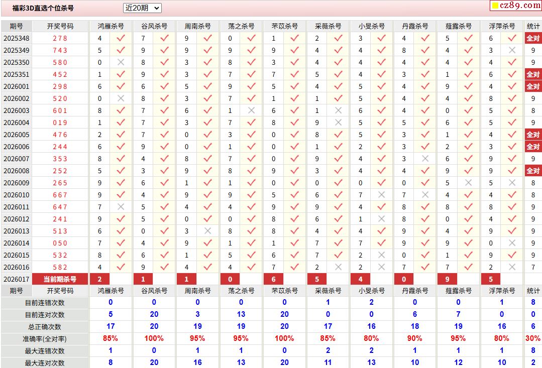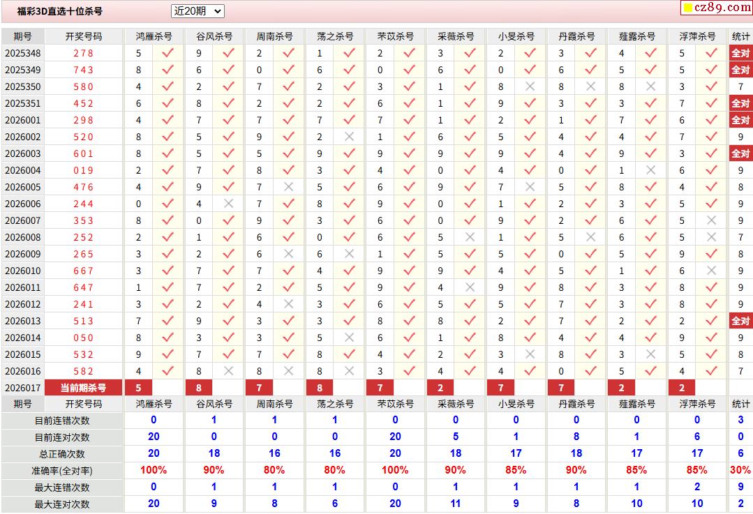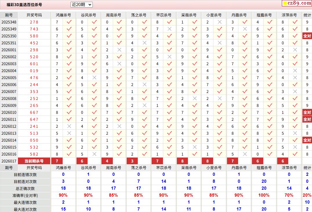 26年017期彩宝贝专家福彩3D杀号定码图表