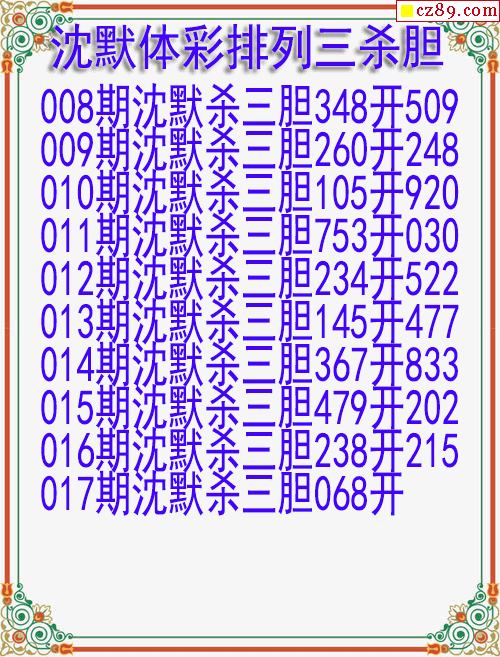 26年017期沈默体彩排列三杀胆图迷