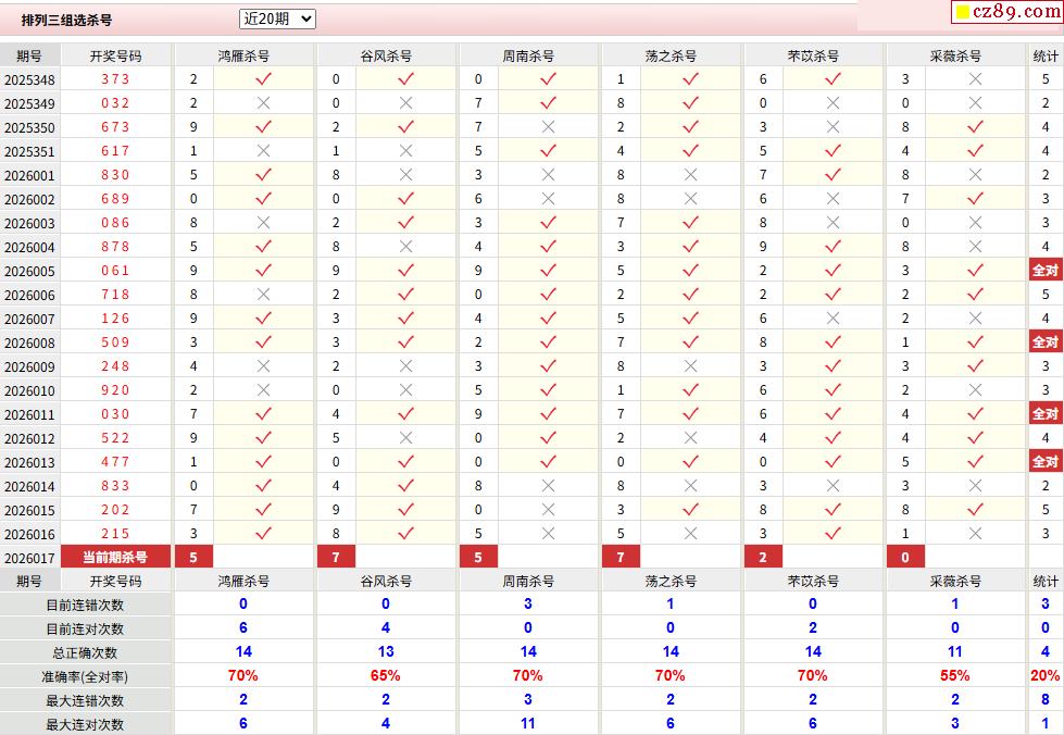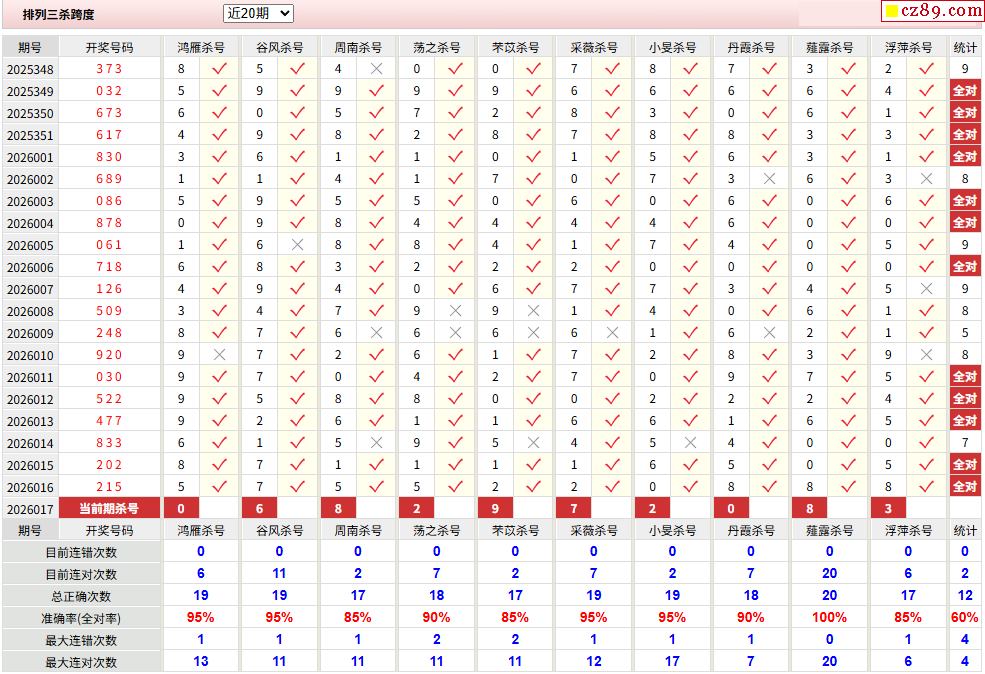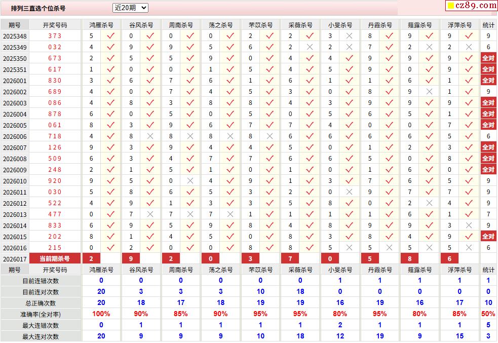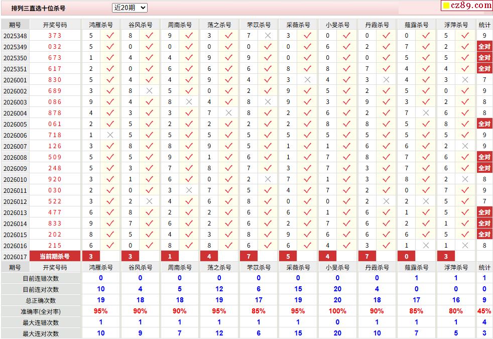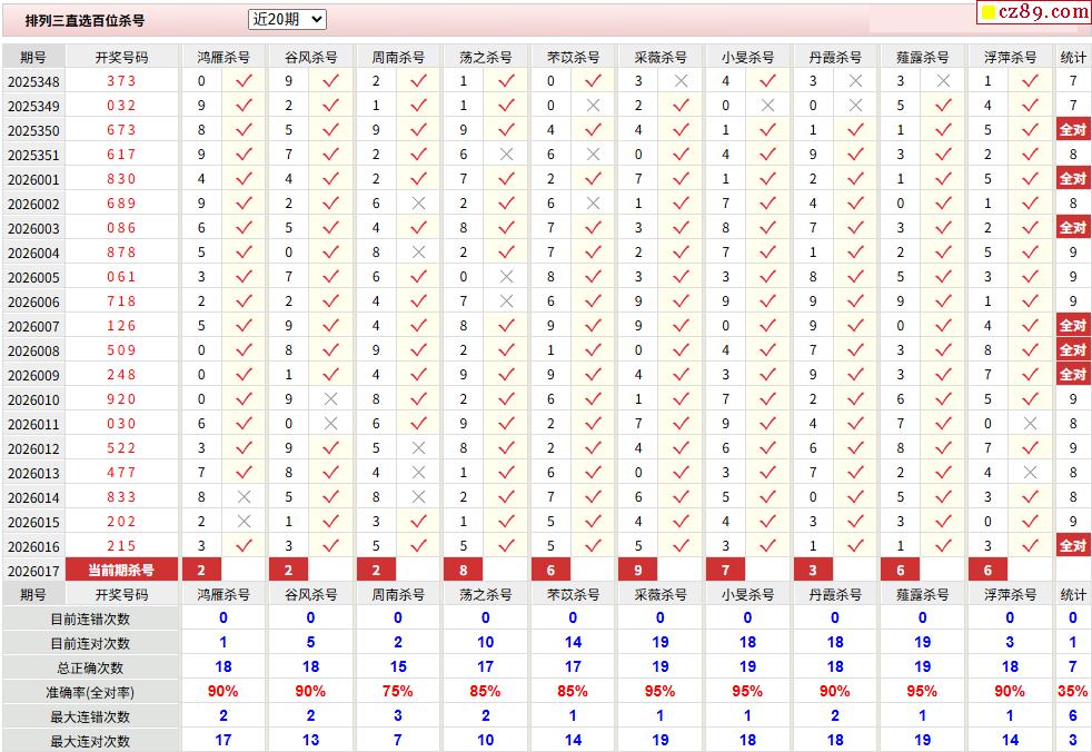 26年017期彩宝贝专家体彩P3杀号定码图表