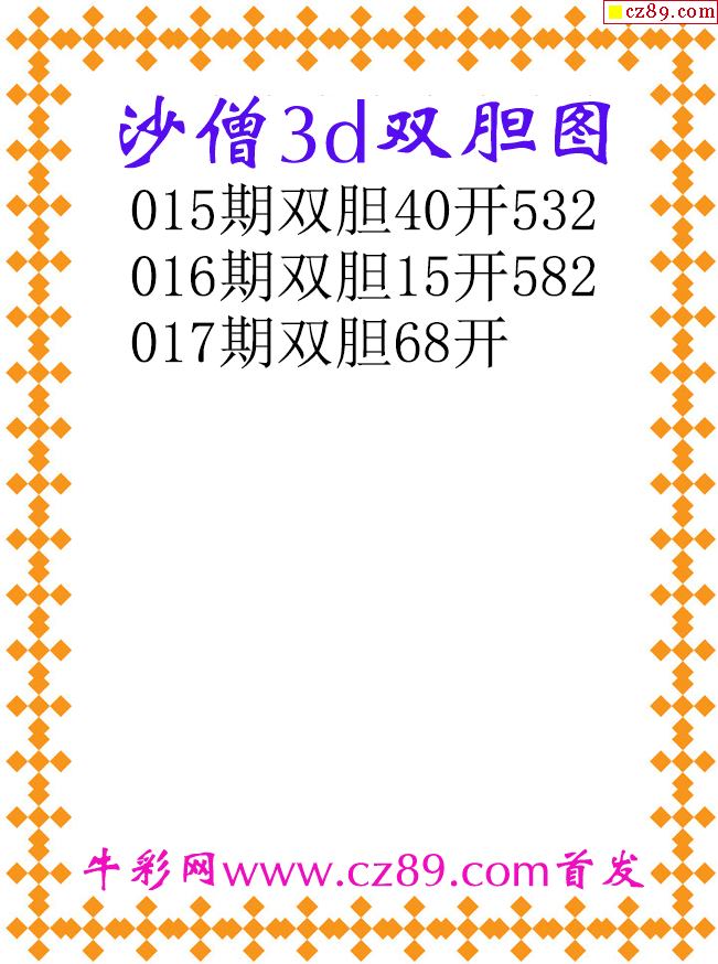 沙僧双胆26017期3d原创图谜